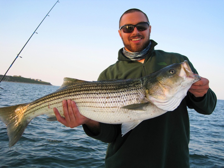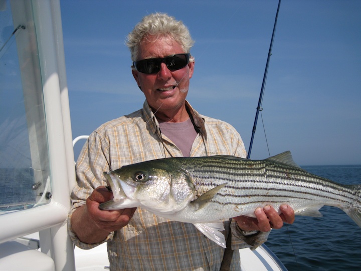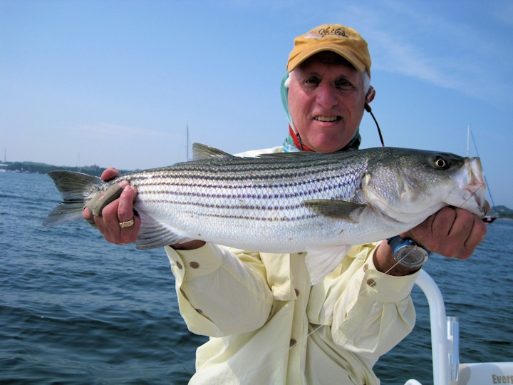 Most of the smaller size stripers have separated them from the bluefish schools. Look closer to shore into the shallows for better odds. Still the bluefish to bass ratio is about six to one. You just can’t escape the bluefish demons. Captain’s Log: Tom Brant fore fill his dream of catching his first striper ever on Saturday with several of his friends on board. Tom managed to put a fourteen pounder over the rails. Samantha, his girlfriend provided the generous gift as a graduation present. Why can’t other fishermen find a woman like that? Tom managed plenty of bluefish and maybe four other stripers had plenty to celebrate afterwards. Tom Brandt